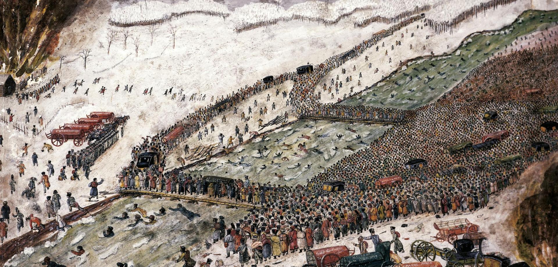 Die russische Armee war zwar kleiner, bewegte sich aber auf heimischem Boden und hatte so besseren Zugang zu Vorräten und Nachschub als die Armee Napoleons. Ausserdem war die einst so mobile Armee Napoleons durch ihre Grösse sehr langsam geworden. Dies nutzten die Russen zu ihrem Vorteil und wichen einem direkten Kampf immer wieder nach Osten aus. Auf ihrem Rückzug verbrannten die Russen sämtliche Felder und Mühlen, sodass es der Armee Napoleons schwer fiel sich zu ernähren. Diese Taktik wird «Taktik der verbannten Erde» genannt. Als Napoleon endlich Moskau erreichte, stand auch diese Stadt bereits in Flammen und war menschenleer. Zudem waren seine Truppen dem kalten russischen Winter schutzlos ausgeliefert. Zahlreiche Soldaten erfroren, verhungerten oder fielen Krankheiten zum Opfer. Als Napoleon den Rückzug befahl, nutzte dies die russische Armee, um die ohnehin geschwächten Truppen immer wieder anzugreifen. Von ursprünglich 600 000 Mann kehrten nur 30 000 in ihre Heimat zurück – Napoleon hatte die erste grosse Niederlage erlitten
