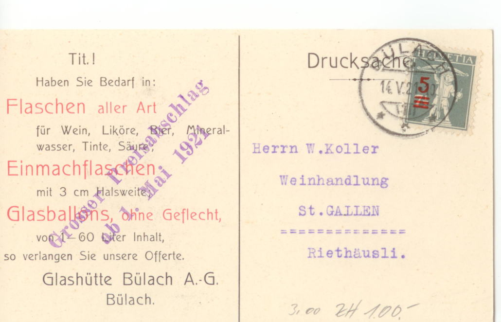1890 wurde in Bülach ein kleines Glaswerk gebaut, das sich über die Jahre zur Glasfabrik Vetropack AG entwickelte. Diese war bis 2001 im das grösste Glasverpackungsunternehmen der Schweiz.
