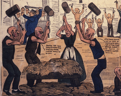 “Beating this here hemp is worse than breaking stones. Lord have mercy on us poor. Our heads shaved and we are not allowed to wear a shirt; we are like slaves!”