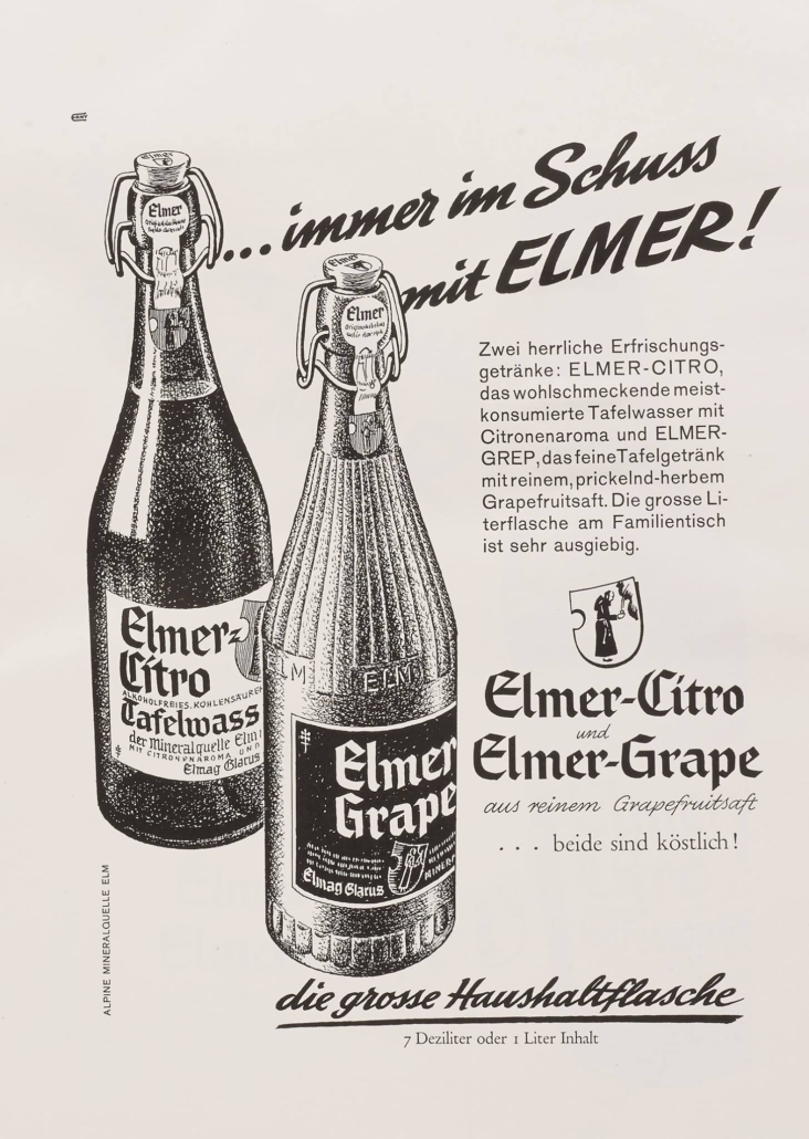 Schon die Kurgäste tranken das Mineralwasser, weil sie sich davon eine gesundheitliche Wirkung versprachen. Oskar Schärli, der damalige Besitzer des Kurhauses in Elm, begann 1925 das Wasser aus der Elmer Quelle in Flaschen abzufüllen. Er verkaufte das Mineralwasser unter dem Namen «Elmer Sprudel». Zwei Jahre später mischte er Zitronensirup aus natürlichen Aromen dazu und so war das «Elmer Citro» geboren. Der Markenname wurde sofort registriert, damit er von niemandem kopiert werden konnte. Bereits zwei Jahre nach der Erfindung des Elmer Citros wurde das erste Flaschenabfüllgebäude unmittelbar neben dem Kurhaus errichtet. Bis heute sind die «Mineralquellen Elm» der einzige industrielle Betrieb im Ort.