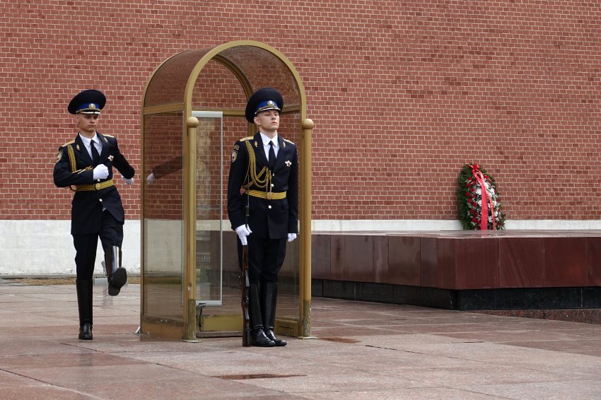 “Dein Name ist unbekannt, deine Heldentat ist unsterblich”, steht eingemeisselt an der Anlage im Alexandergarten in Moskau. In einem fünfzackigen Bronzestern (Symobol für die Sowjetunion) in der Mitte brennt ein ewiges Feuer. Seit 1997 steht hier eine Ehrenwache.