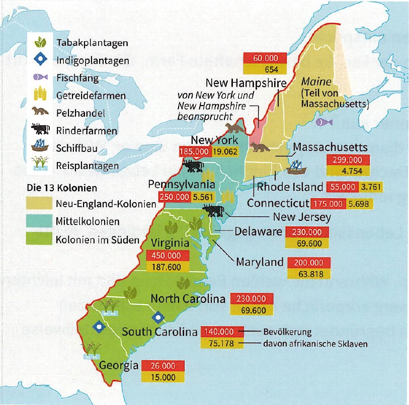 Gesetze. Die meisten Personen, die in den 13 englischen Kolonien lebten, waren Engländer. Dort wohnten aber zudem Niederländer, Deutsche, Schweden, Polen, Italiener, etc. Jede dieser Kolonien besass ihre spezielle Vergangenheit und Eigenart. Dennoch lassen sich die 13 englischen Kolonien sehr grob differenziert unterteilen in drei Gruppen: